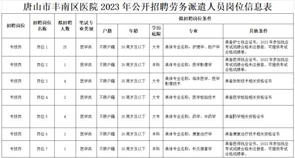 1、面向社会招聘35周岁以下(1989年10月31日以后出生)专科及以上普通高等院校医学类专业毕业生,具备相应岗位执业资格(2023年参加执业考试成绩合格未注册者,可提供考试合格成绩单)。
