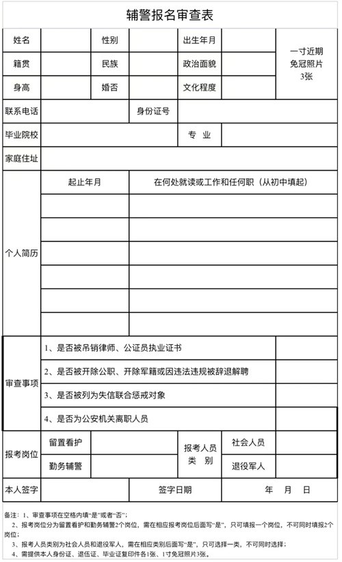 附:辅警报名审查表(报名时需持填写好的表格现场审核)