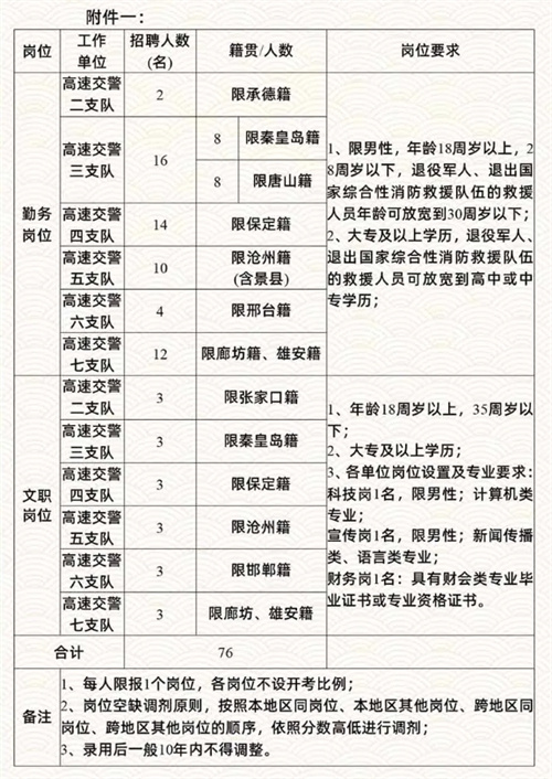 省公安厅交通管理总队高速交警支大队招聘76人公告